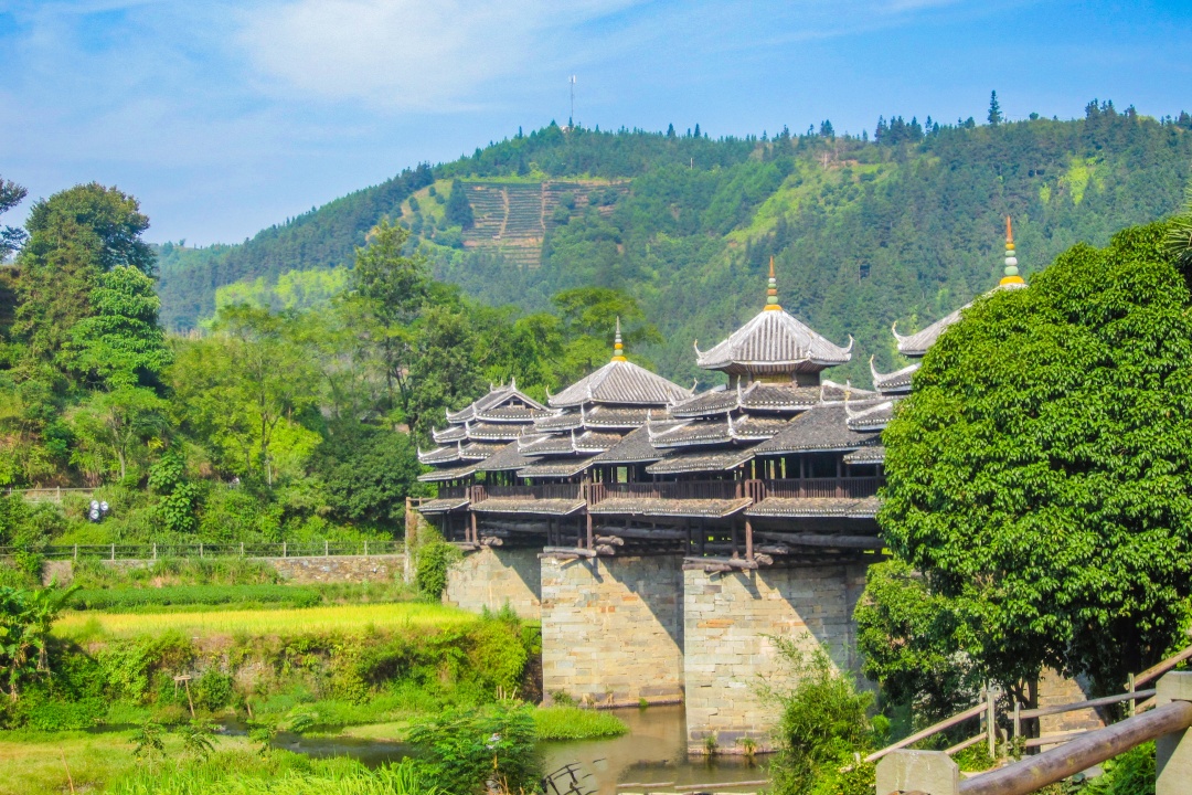 Sanjiang, located at the intersection of Guangxi, Guizhou, and Hunan provinces, is home to the Dong ethnic group. Visitors can explore the Chengyang Wind and Rain Bridge, a masterpiece of traditional wooden architecture without nails, and stroll through centuries-old villages like Ma'an and Ping'an. Locals still wear traditional clothing and perform folk songs, offering travelers an authentic taste of minority life. Surrounded by rice terraces and rivers, the area is perfect for cultural exploration and quiet scenic walks.