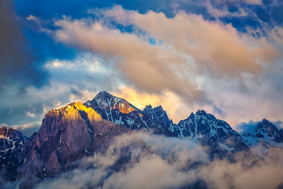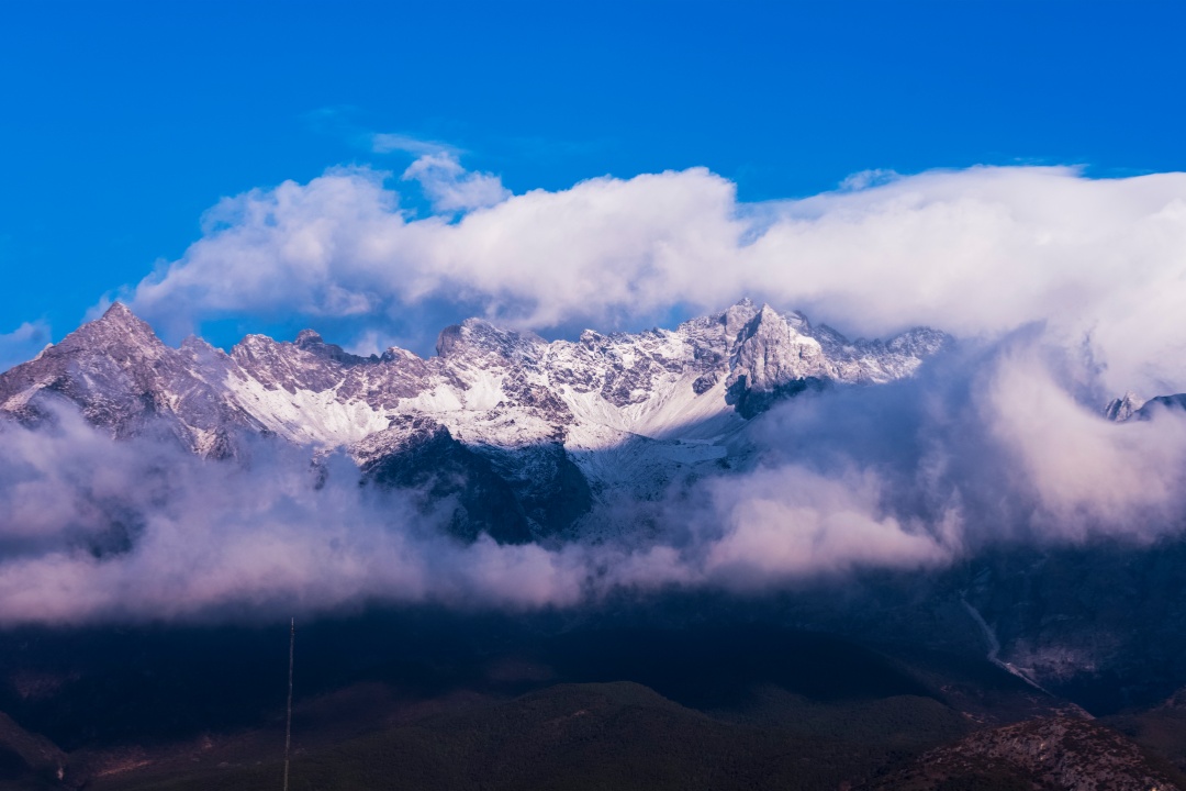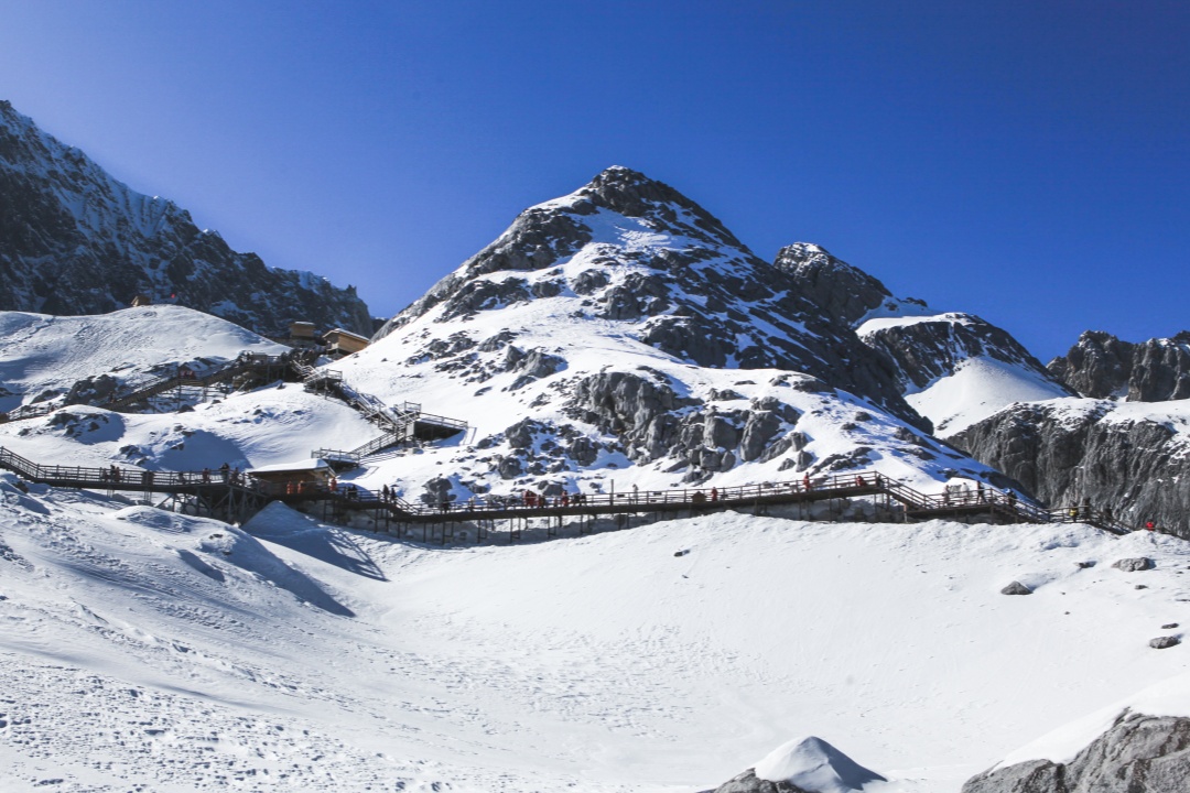The Jade Dragon Snow Mountain is the southernmost mountain range in Eurasia with perpetual glaciers. Its twelve peaks, covered in snow all year round, form a jade dragon that guards the horizon of Lijiang. Shanzidou Peak, at 5,596 meters, is the highest summit and has never been conquered.