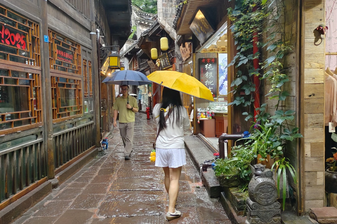 Afternoon: Tour Fenghuang Ancient City, wandering along the Tuo River to explore historic alleys, stilt buildings, and ethnic museums.